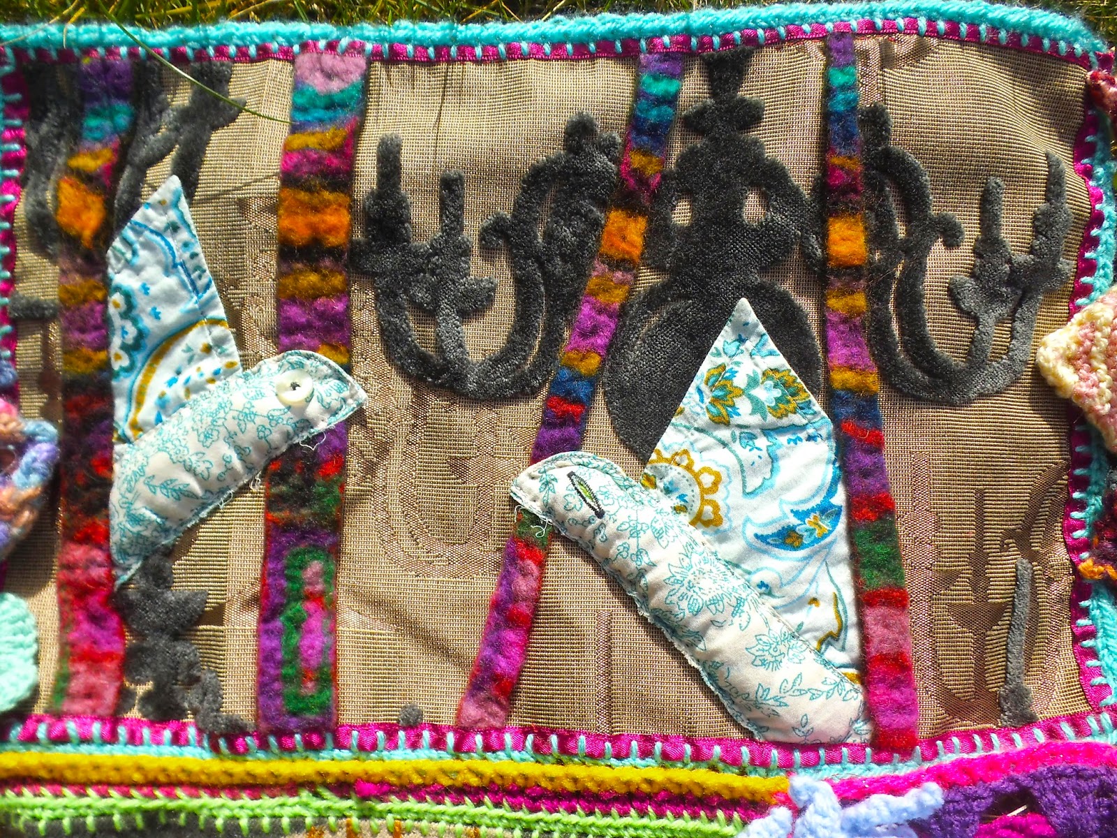 This is a locket Pa gave me for my birthday before he died, it's filled with some of his hair I cut off when Ma and me did his vigil until his body was taken away, strung on Ma's plait, wrapped with fabric off cuts from the shroud I made him, wrapped in copper (the three of us taking apart an old washing machine in Ducky Cuddles Cottage to scavenge this wire out has always been a very fond memory.)